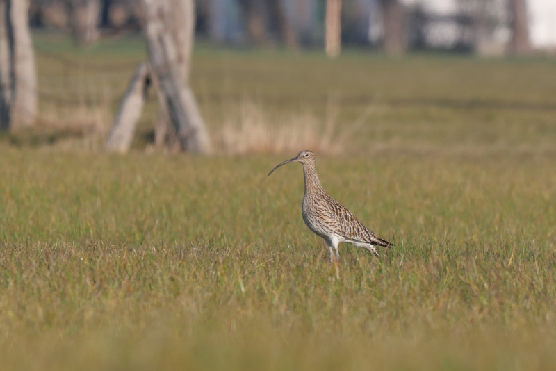 Der Große Brachvogel ist vom Aussterben bedroht. Im Bergner Moos brüten jährlich noch 10 bis 15 Brutpaare. In anderen Wiesenbrütergebieten ist er regelmäßig als Nahrungsgast anzutreffen; einzelne Brutversuche in den vergangenen Jahren blieben jedoch erfolglos. (Foto: Johannes Almer)